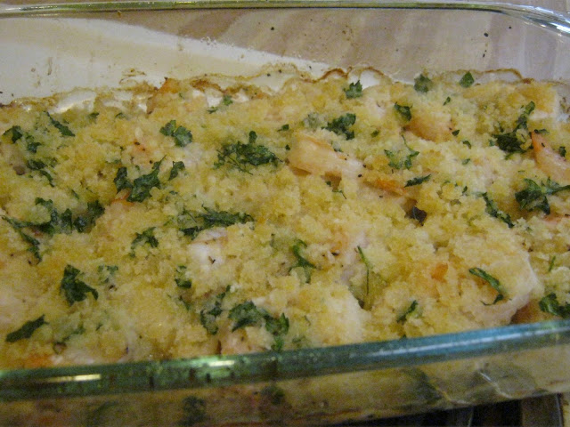 dish over the shrimp.